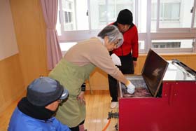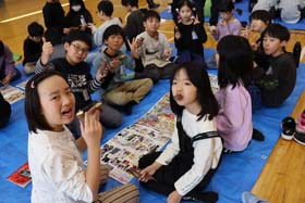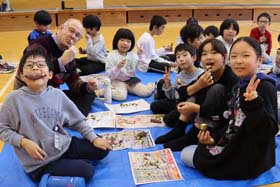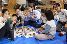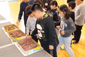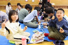 地域のみなさんにお礼を言い、2学年ごとの、縦割り班によるグループでいただきました。