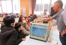 大潟土地改良区のみなさんが来校し、出前授業を行いました。