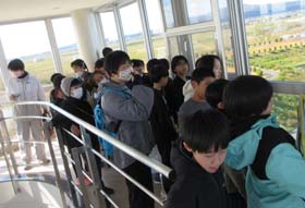 大潟村の歴史や排水の仕組みについて学びました。実際に南部排水機場の施設も見学しました。(2025.11.12)