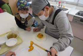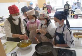 JA女性部のみなさんのサポートでかぼちゃの料理に挑戦です。丁寧に教えていただき、おいしく出来上がりました。