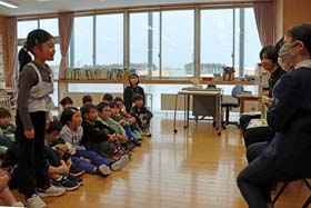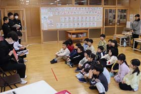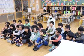 大潟中学校から、学習・図書委員会のお兄さんお姉さんが、低学年に読み聞かせに来てくれました。