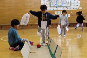一緒に、節分の鬼の面を作ったり、手作り屋台でゲームを楽しんだりしました。