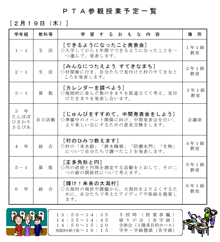 PTA授業参観・全体会・懇談