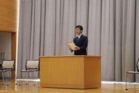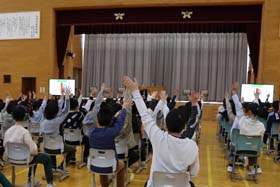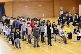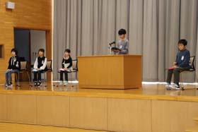 校長先生のお話に続き、代表児童が、今年度頑張ったことや新学年での目標を発表しました。