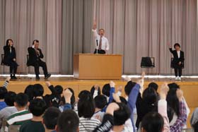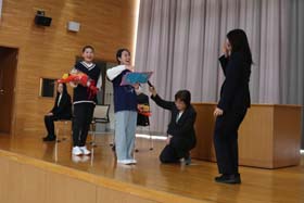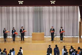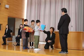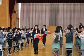子どもたちが、楽しかった思い出のメッセージと花束を贈り、感謝の気持ちを込めて、拍手で見送りました。