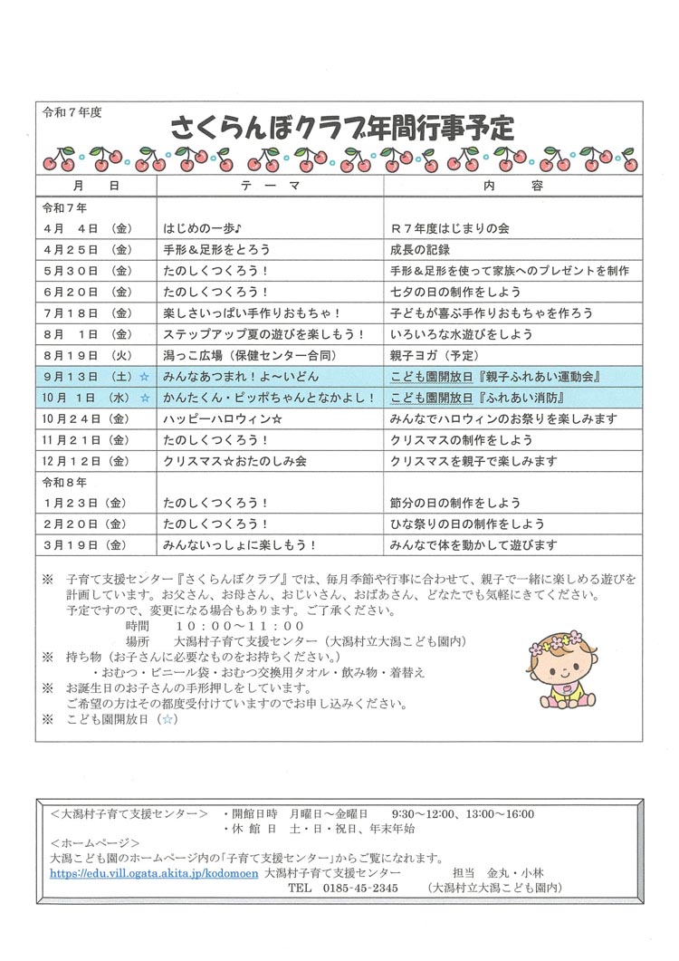 ※行事の内容変更および中止をさせていただく場合がありますが、ご理解、ご協力のほどよろしくお願いします。